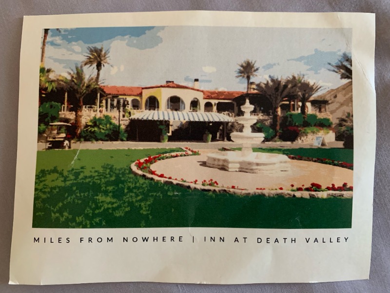 Suddenly, a steady, slightly heavy-footed gait started throughout the dining room... Us, assuming the footsteps came from an above hotel guest, continued to admire the collection of rocks. This is when we joked about the Inn's dining room being a scene from the horror movie "The Shining". We also noticed the stack of spooky postcards sitting on the dining room table and decided to take one. The steady footsteps continued even after we left...